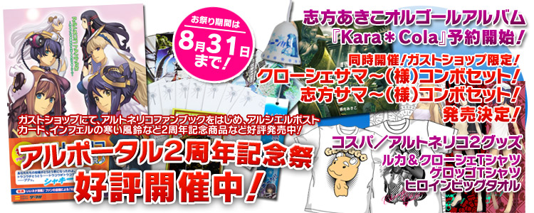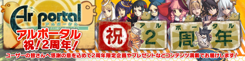アルポータル2周年を記念して、いままでのアルトネリコ関連グッズを4週連続で大プレゼント!懐かしいグッズも多数ご用意しました!もちろんレアアイテムもありますよー!総勢137アイテムというスーパービッグプレゼント企画!参加しないと損ですよ!