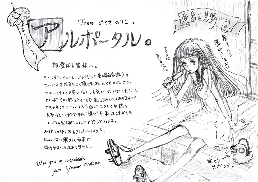 | ◆アルトネリコシリーズ ヒュムノス担当 みとせ のりこ コメント◆ |