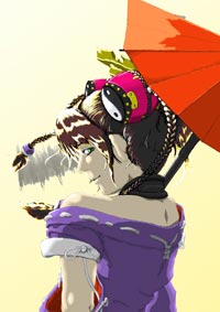 他にはハイライトを入れたことや、後は影を多めに作ったり、データがない唐傘をかなーりアレンジしてみたり(だから変w)やたらとカラフルにしてみたり等(これ普通ですねw)なにぶん、ど素人なので悔いも多く残りましたが、得る物も多かったように感じます。